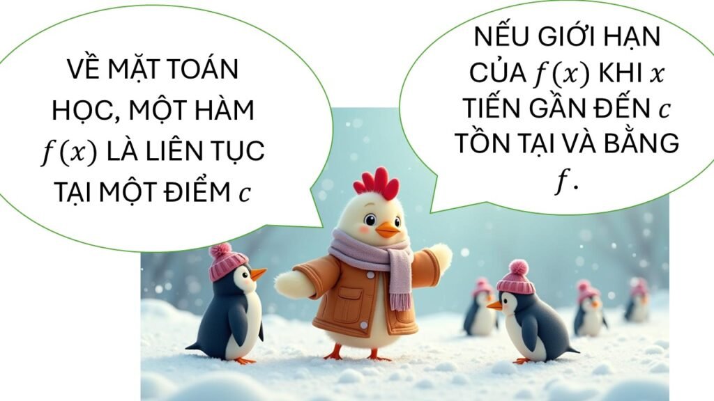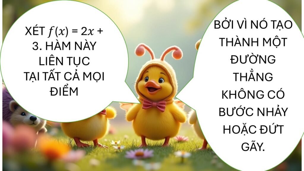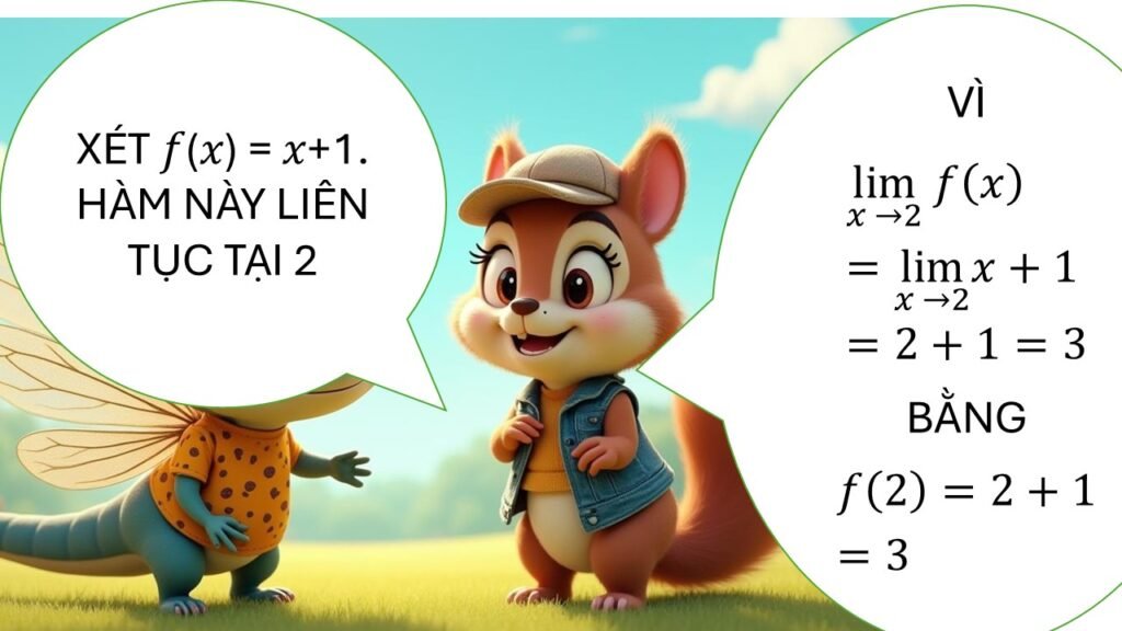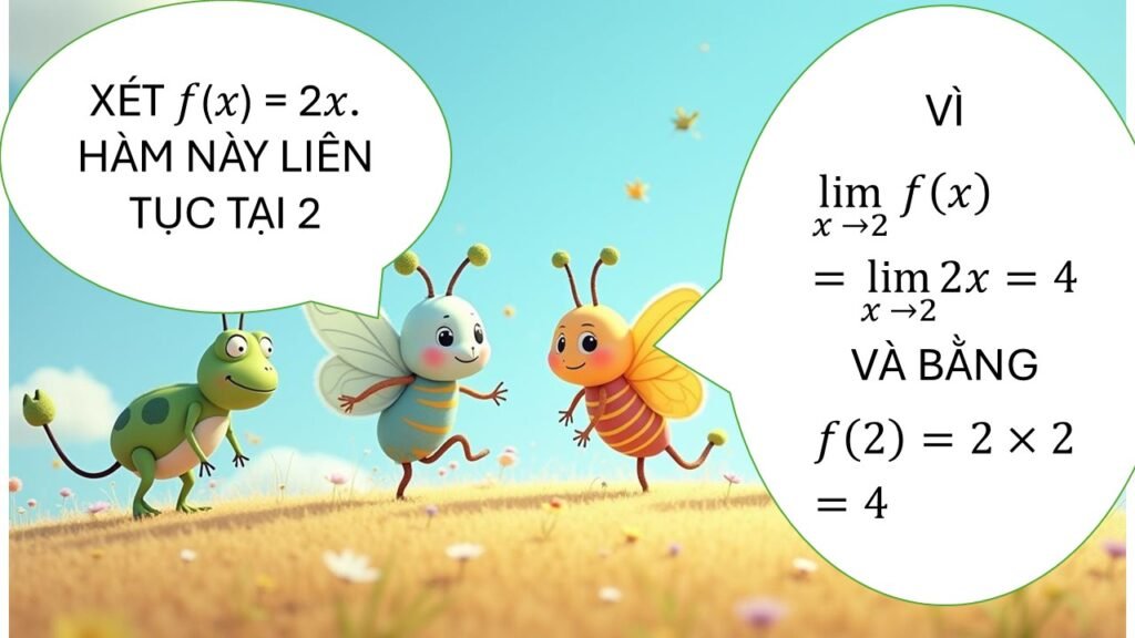👉 Nói cách khác: giá trị của hàm tại điểm đó bằng với giới hạn khi tiến tới điểm đó.