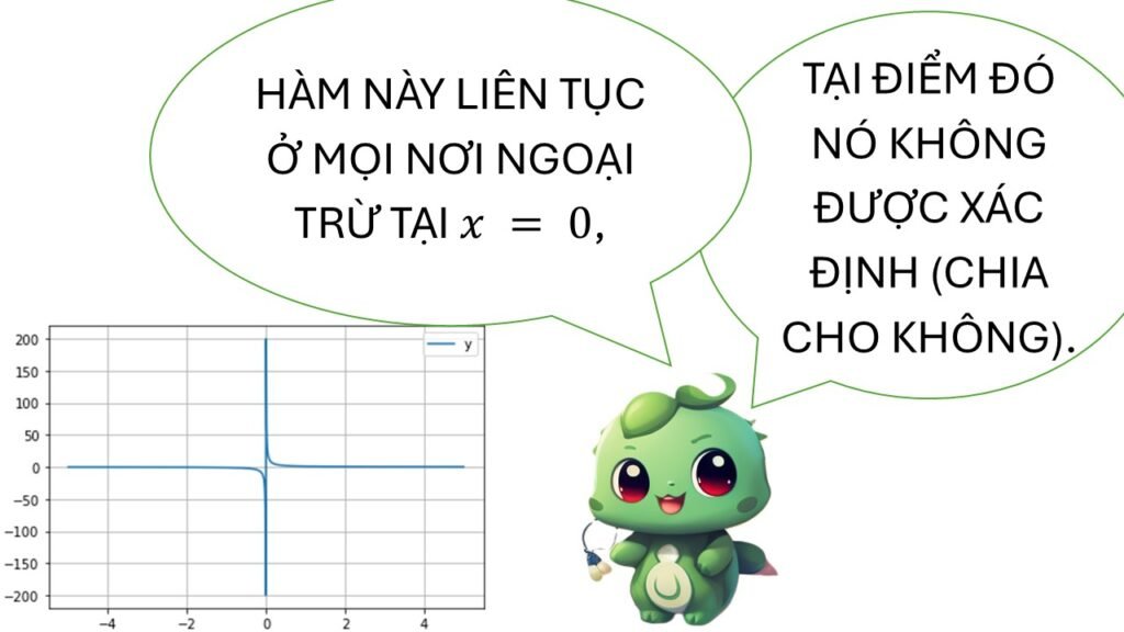 - Hàm không liên tục: phải “nhấc bút” tại điểm gián đoạn.