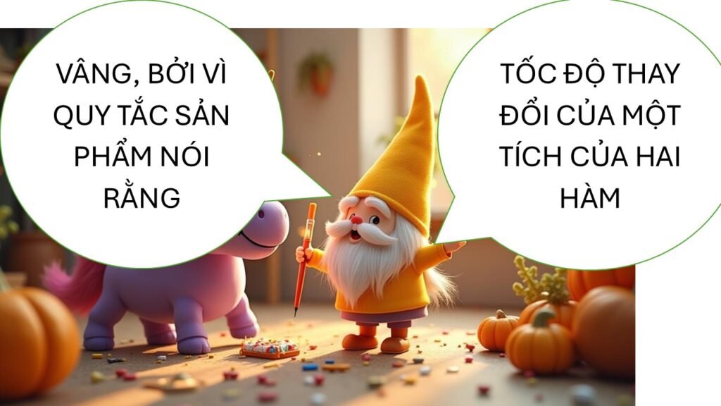 👉 Khác với quy tắc tổng, ở đây ta không thể chỉ lấy đạo hàm từng phần rồi nhân lại, mà phải áp dụng công thức đặc biệt này.