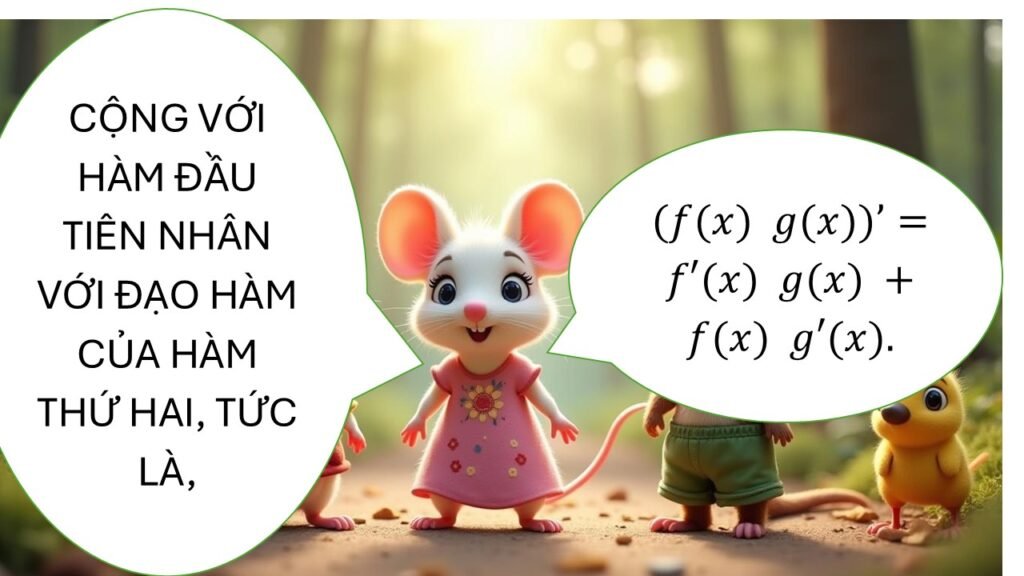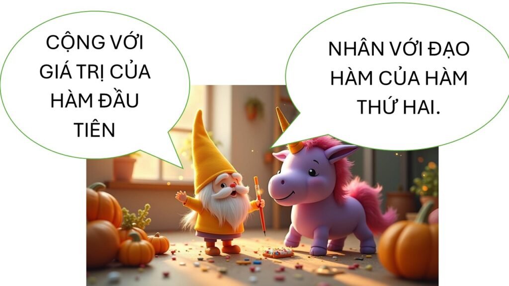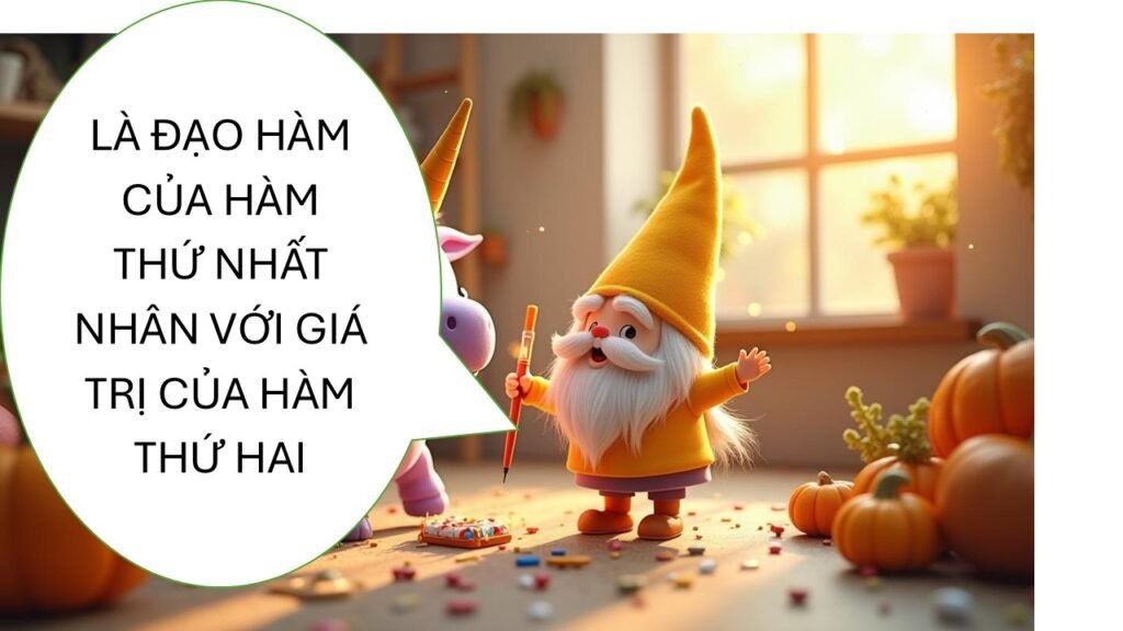 Quy tắc tích: đạo hàm của tích = đạo hàm của hàm thứ nhất × hàm thứ hai + hàm thứ nhất × đạo hàm của hàm thứ hai.