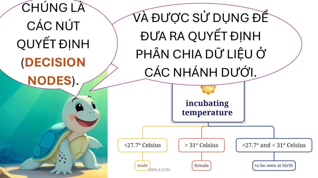- Split node: Các tiêu chí (VD: “Giá < 30k?”, “Đi < 10 phút?”).