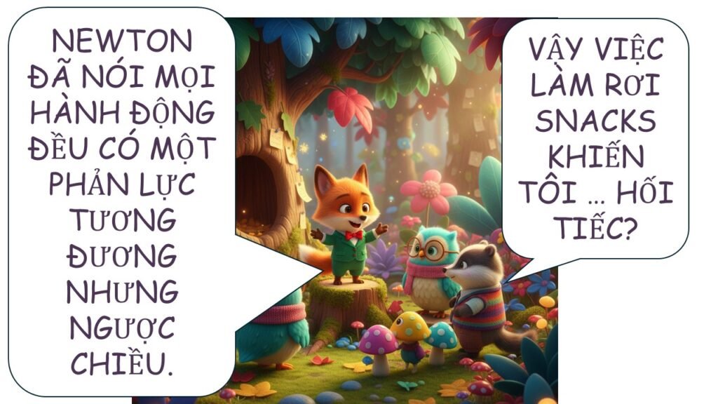 - Cùng độ lớn: Lực tác động mạnh bao nhiêu thì phản lực cũng mạnh bấy nhiêu.