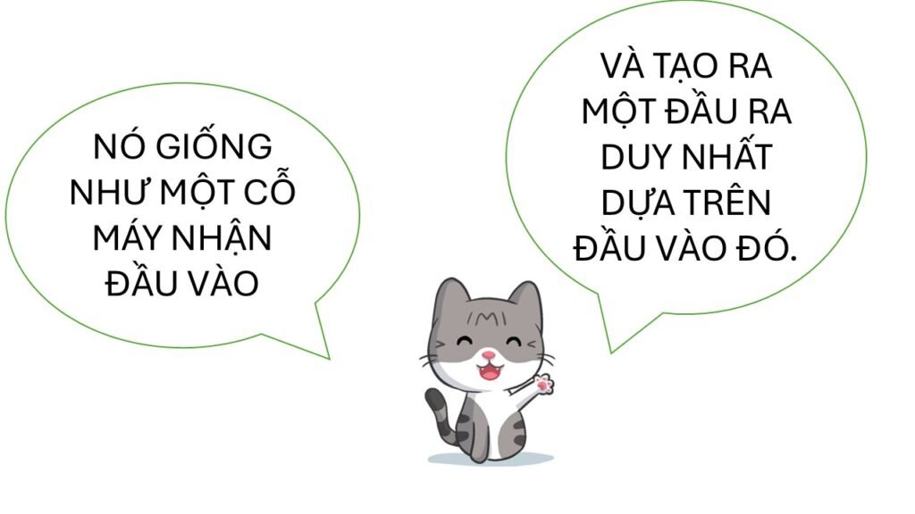 - Hoặc như một đầu bếp chuyên nghiệp: bạn đưa nguyên liệu (x), anh ta luôn cho ra một món duy nhất (y) theo công thức bí mật 😄