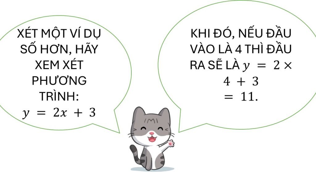 Hãy tưởng tượng hàm số là một cỗ máy kỳ diệu tên là f, chuyên “biến hóa” các nhân vật tên x thành các nhân vật mới tên y.