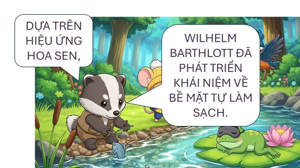 Quá trình này cực kỳ hiệu quả, giúp lá sen luôn sạch sẽ để tối đa hóa khả năng quang hợp và ngăn ngừa sự phát triển của nấm mốc.