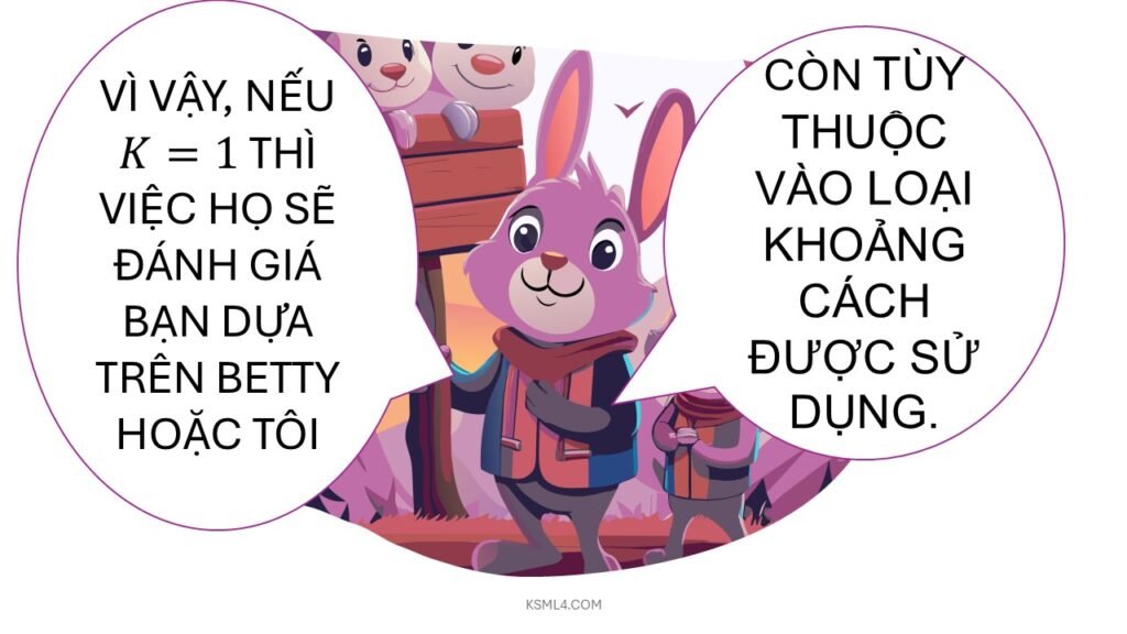 - Nếu bạn hỏi ít người quá (K=1), bạn dễ bị “bịp” bởi một người hàng xóm quá lắm khen hoặc chê thôi.