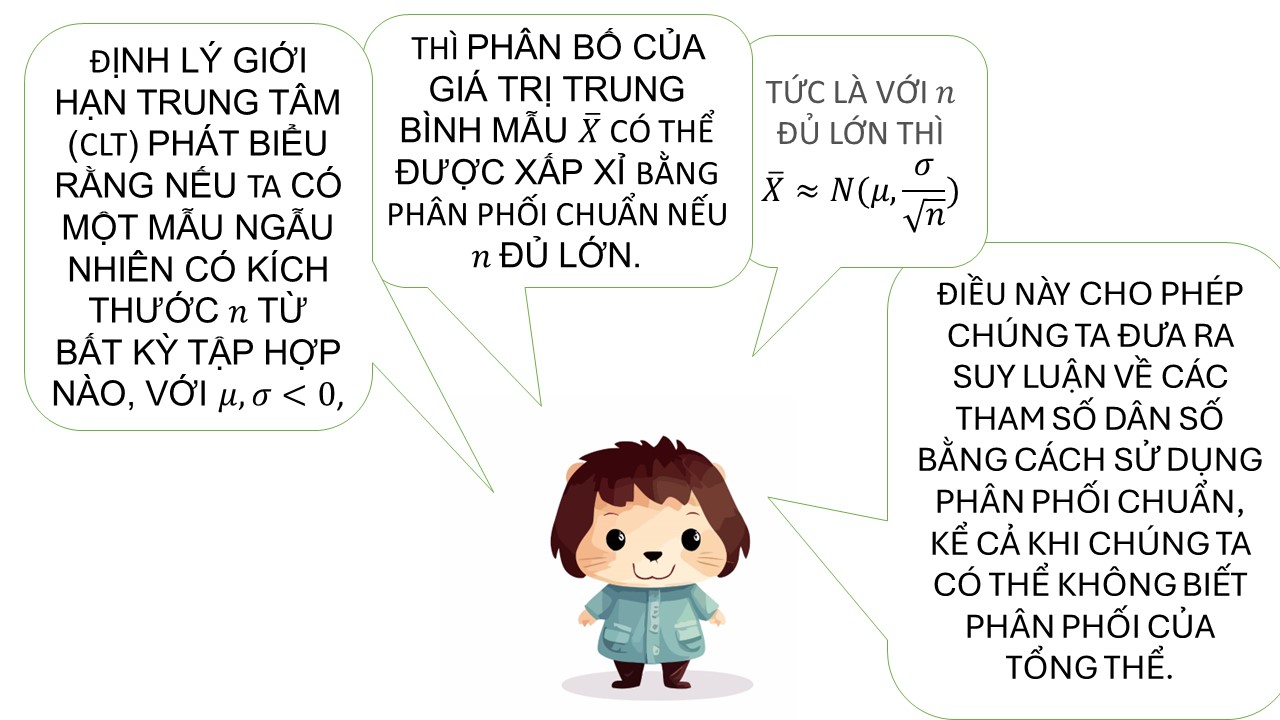 “Với mức tin cậy 95%, chiều cao trung bình thật sự của toàn bộ học sinh trong trường nằm trong khoảng 157.24 cm đến 162.76 cm.”