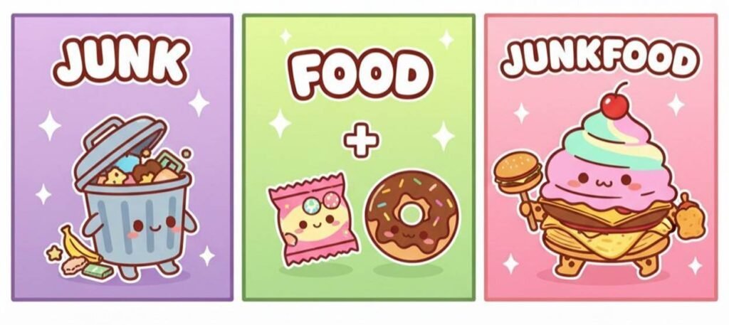 (rác rưởi + đồ ăn = đồ ăn vặt)