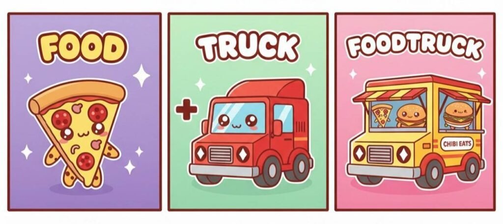 (đồ ăn + xe tải = xe tải thực phẩm)