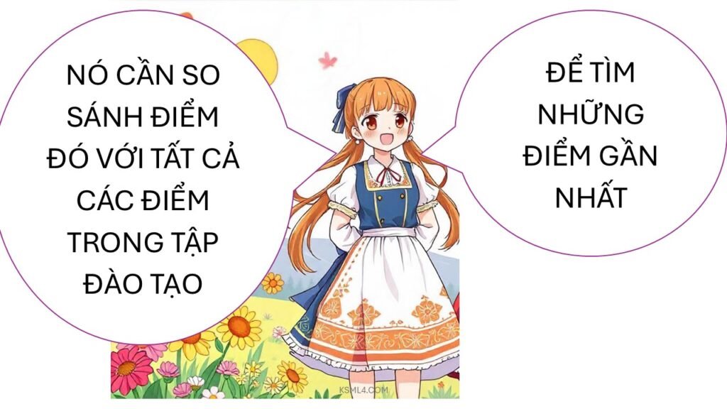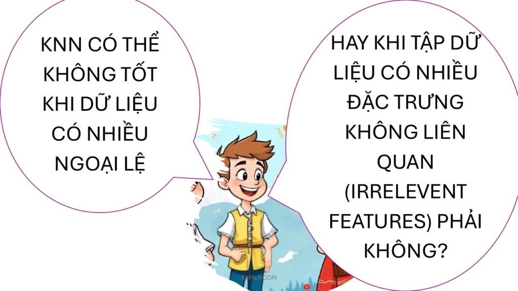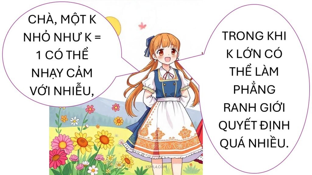 - Không có một giá trị K “tốt nhất” chung cho mọi bài toán; giá trị tối ưu phụ thuộc vào đặc điểm cụ thể của tập dữ liệu. Ví dụ, dữ liệu có nhiều ngoại lệ hoặc nhiễu có thể hoạt động tốt hơn với giá trị K lớn hơn để làm mịn ảnh hưởng của chúng.