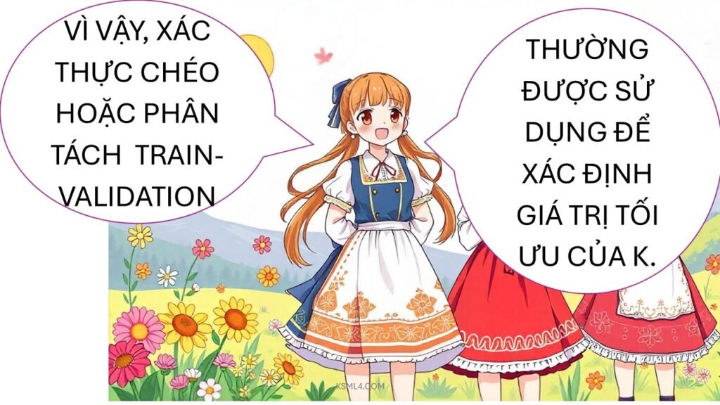 - Kiểm định chéo (Cross-validation): Đây là một kỹ thuật mạnh mẽ và phổ biến nhất để lựa chọn giá trị K tối ưu. Phương pháp này bao gồm việc chia dữ liệu thành nhiều tập huấn luyện và kiểm tra con, sau đó huấn luyện mô hình với các giá trị K khác nhau trên các tập huấn luyện và đánh giá hiệu suất trên các tập kiểm thử tương ứng. Giá trị K mang lại hiệu suất trung bình tốt nhất trên các tập kiểm định sẽ được chọn làm tối ưu. Các công cụ như GridSearchCV trong thư viện Scikit-learn của Python có thể tự động hóa quá trình tìm kiếm siêu tham số tối ưu này.