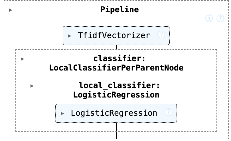 được sử dụng.- Pipeline tự động áp dụng các bước tương tự: nó vector hóa văn bản bằng cách sử dụng từ vựng đã học và sau đó sử dụng bộ phân loại phân cấp đã huấn luyện để dự đoán đường dẫn danh mục.