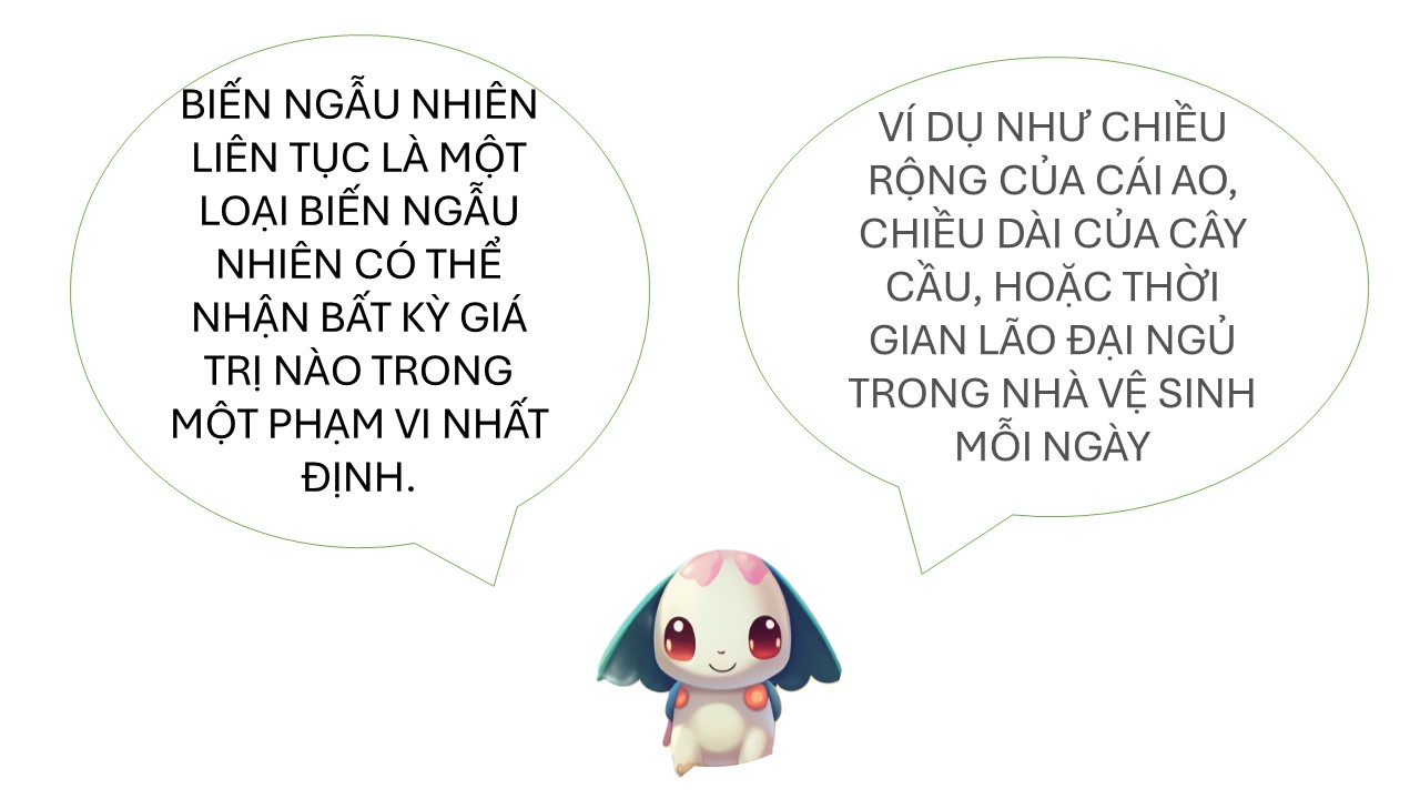 . - Phân phối đều liên tục: Giả sử nhiệt độ mỗi ngày trong một mùa nào đó dao động từ 20°C đến 30°C và mỗi giá trị trong khoảng này có khả năng xuất hiện như nhau, thì đây là một ví dụ của phân phối đều liên tục trên khoảng