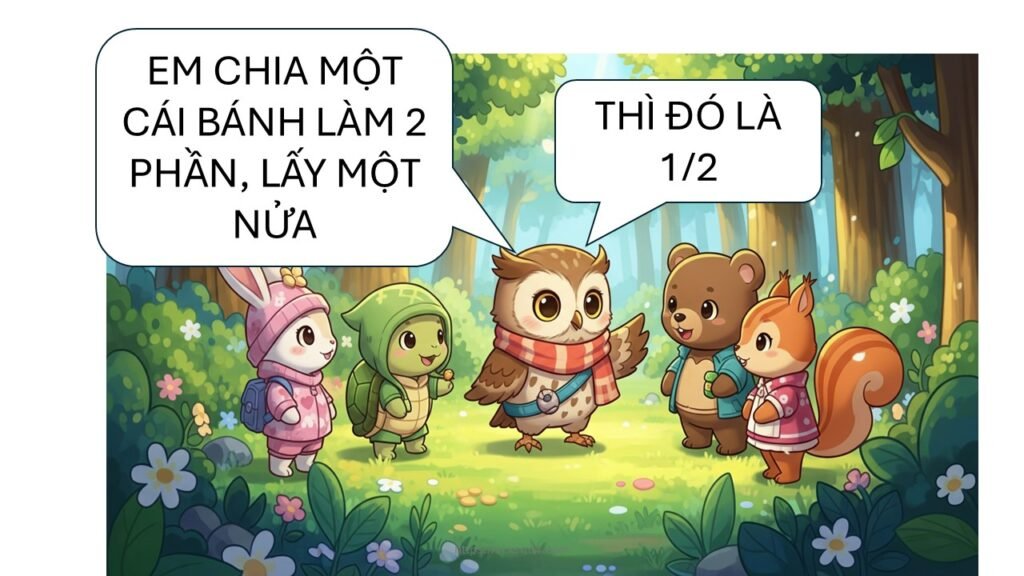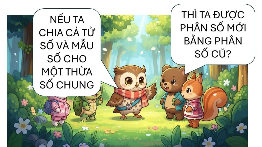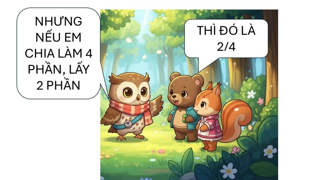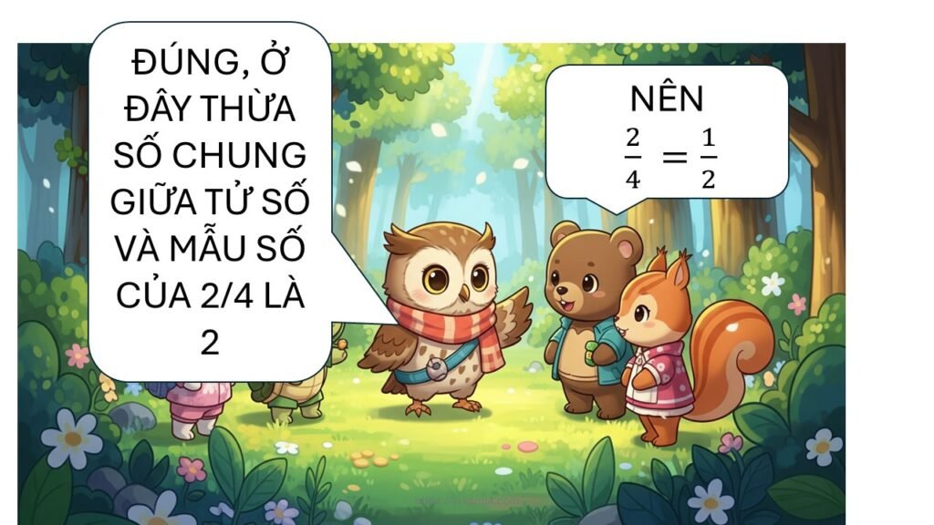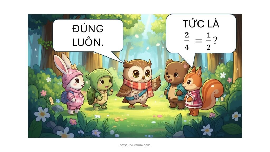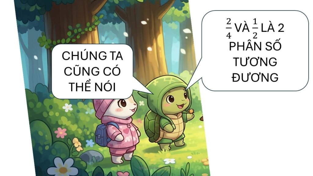 đều là các phân số tương đương vì chúng đều biểu thị một nửa (0.5) của một cái gì đó.