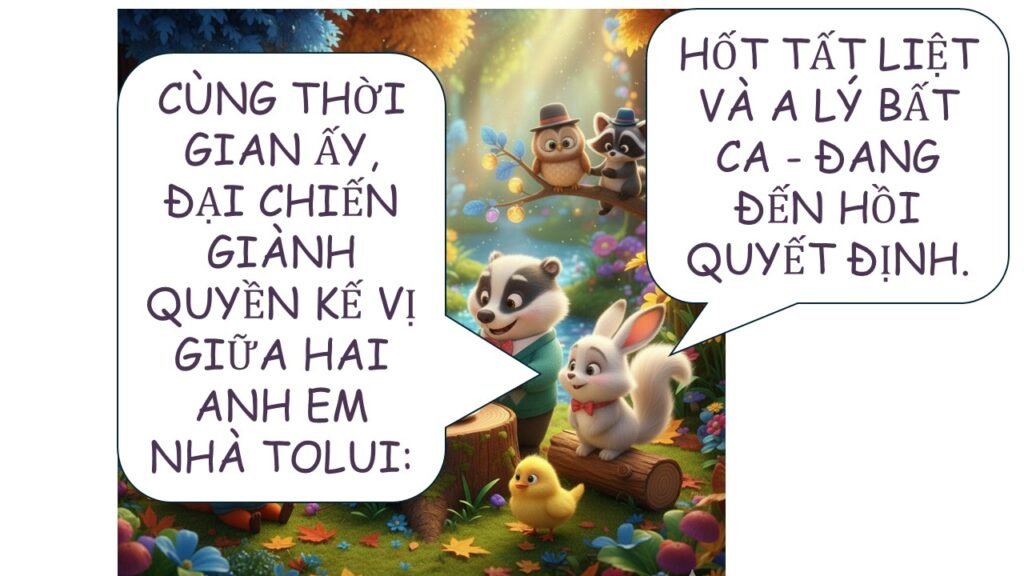Cùng thời gian ấy, đại chiến giành quyền kế vị giữa hai anh em nhà Tolui — Hốt Tất Liệt và A Lý Bất Ca — đang đến hồi quyết định.