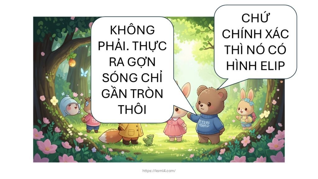 Tóm lại, gợn sóng hình tròn là trường hợp lý tưởng, còn trong thực tế, do nhiều yếu tố tác động như dòng chảy, gió, hoặc hình dạng của nguồn gây sóng, chúng ta thường thấy các gợn sóng có hình elip hoặc các hình dạng phức tạp hơn.