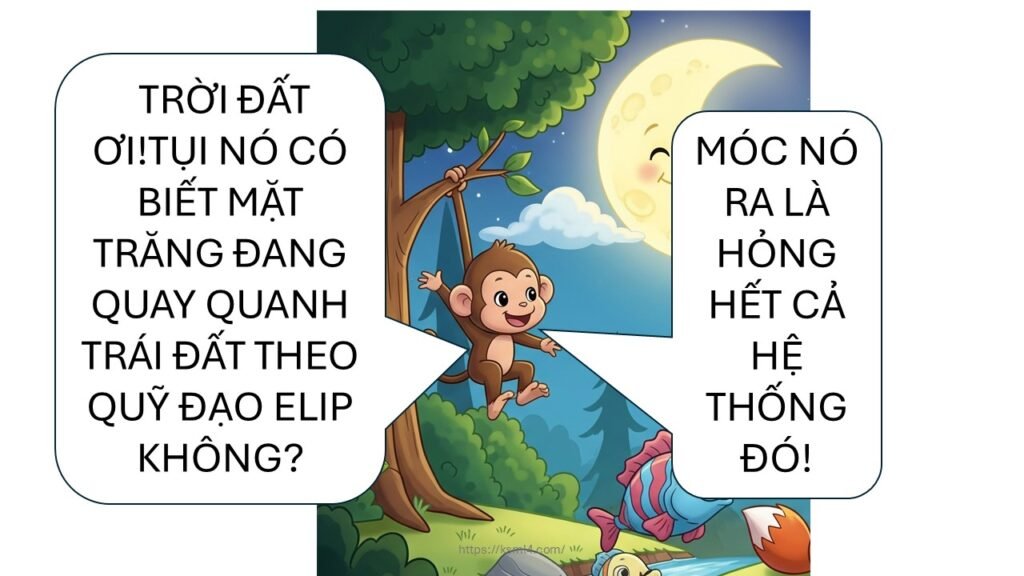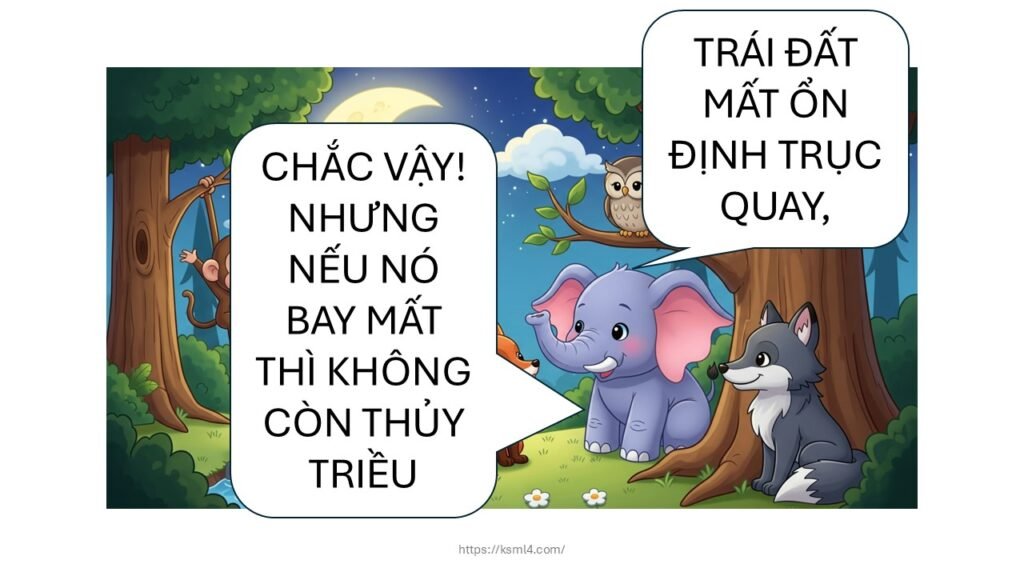 - Tốc độ ngang (quán tính): Mặt Trăng có xu hướng di chuyển theo một đường thẳng do quán tính.