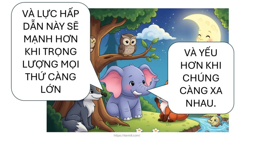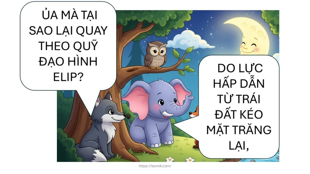 - Lực hấp dẫn: Lực hút của Trái Đất liên tục kéo Mặt Trăng về phía mình.