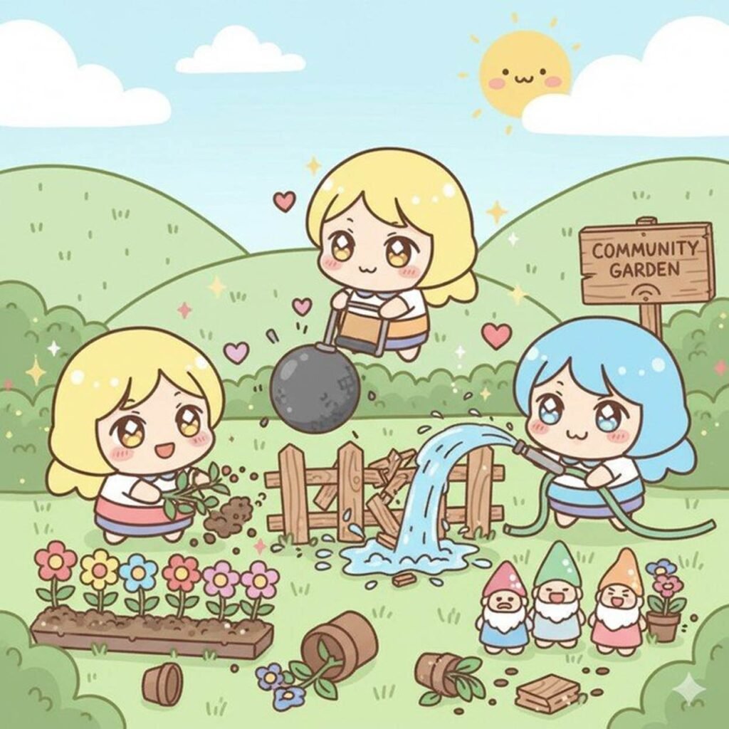 The mindless destruction of the public garden was a kindless act that ruined the community’s hard work.