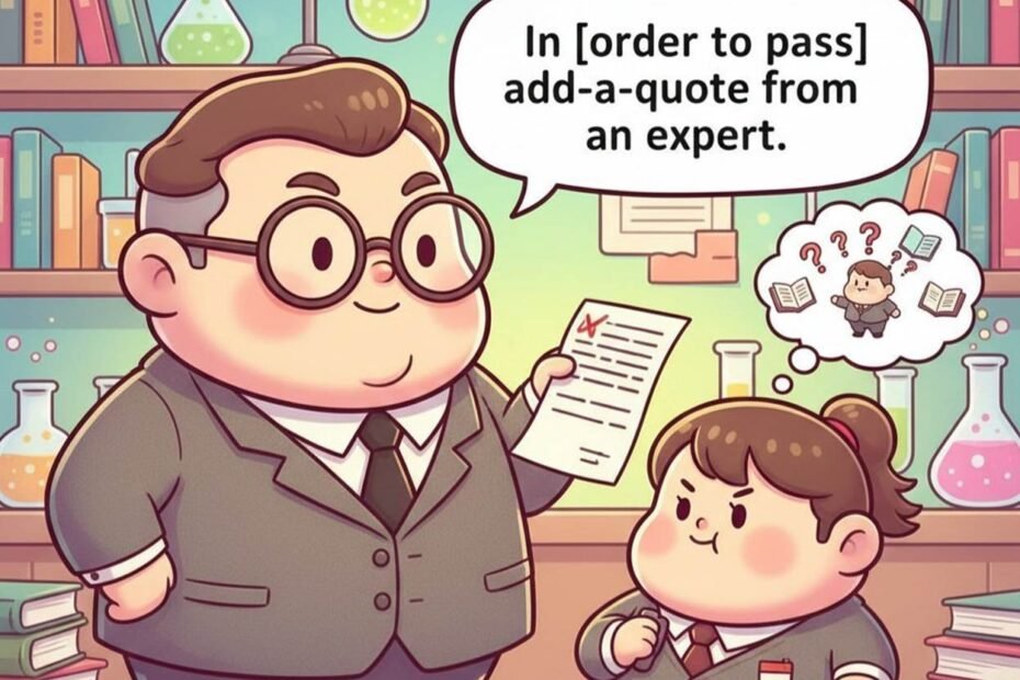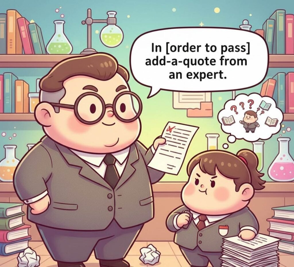 The professor said my essay was inadequate because I didn’t have enough proof. He told me, “In [order to pass], add-a-quote from an expert.”