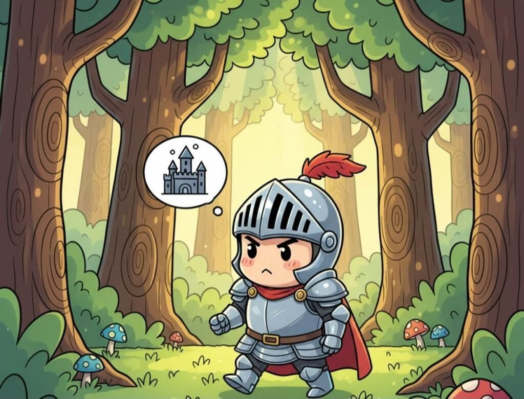 The noble (Sir) wanted to inspect his new surroundings. He walked through the forest, which was full of trees with big, round rings in their trunks.