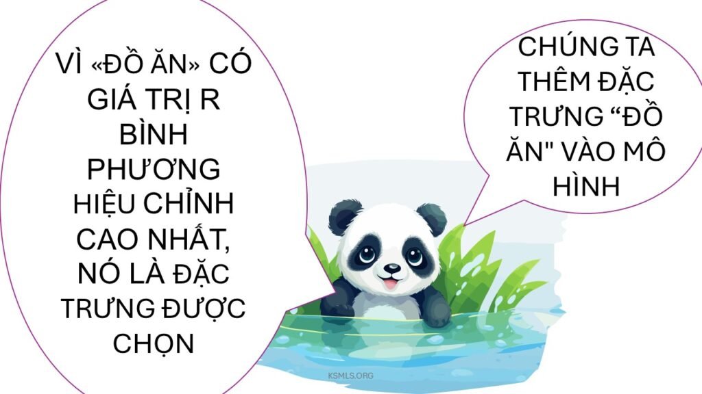 Vì “Thức ăn” có giá trị R bình phương hiệu chỉnh cao nhất, nó là đặc trưng dự đoán quan trọng nhất. Chúng ta thêm “Thức ăn” vào mô hình của mình.