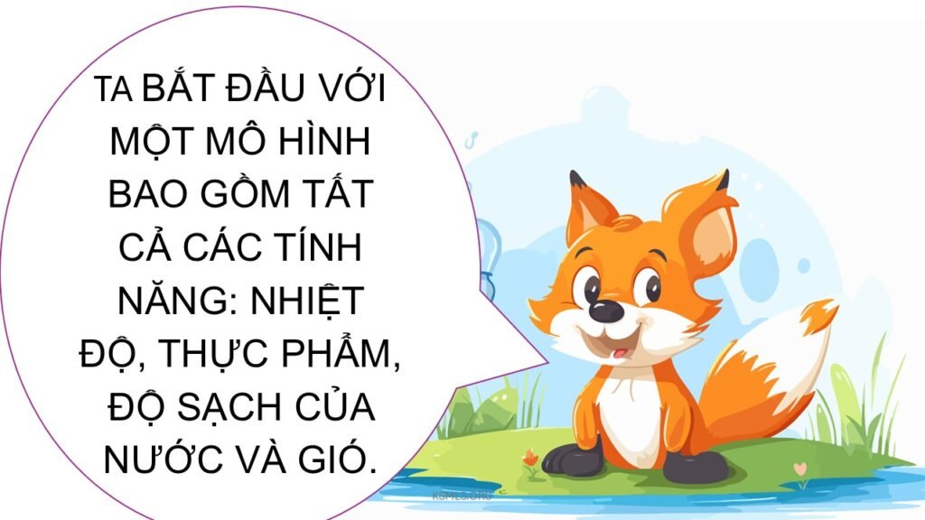 Bây giờ mô hình của chúng ta bao gồm các đặc trưng “Nhiệt độ”, “Thức ăn”, và “Độ sạch của nước”:
