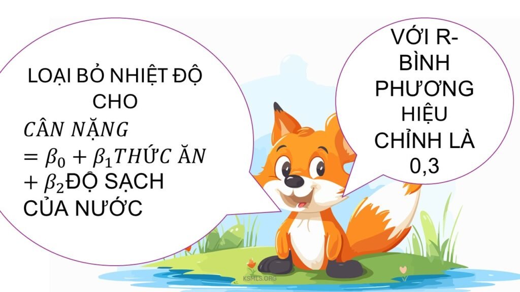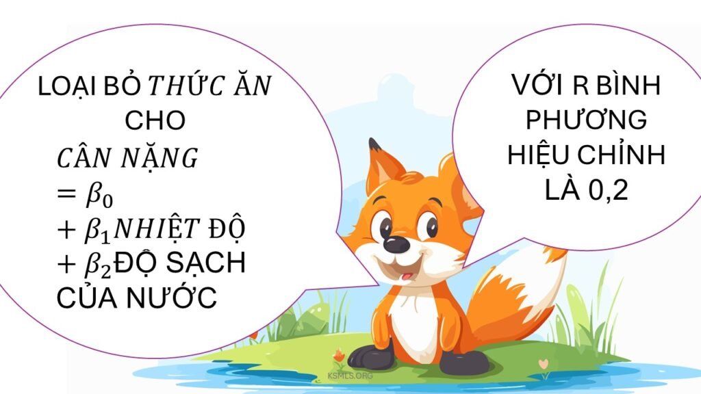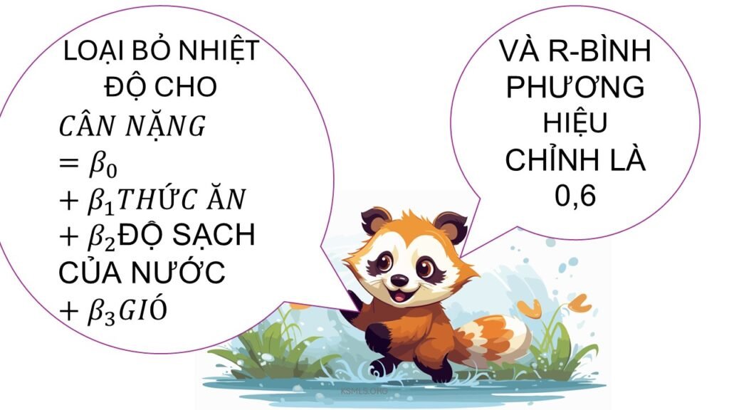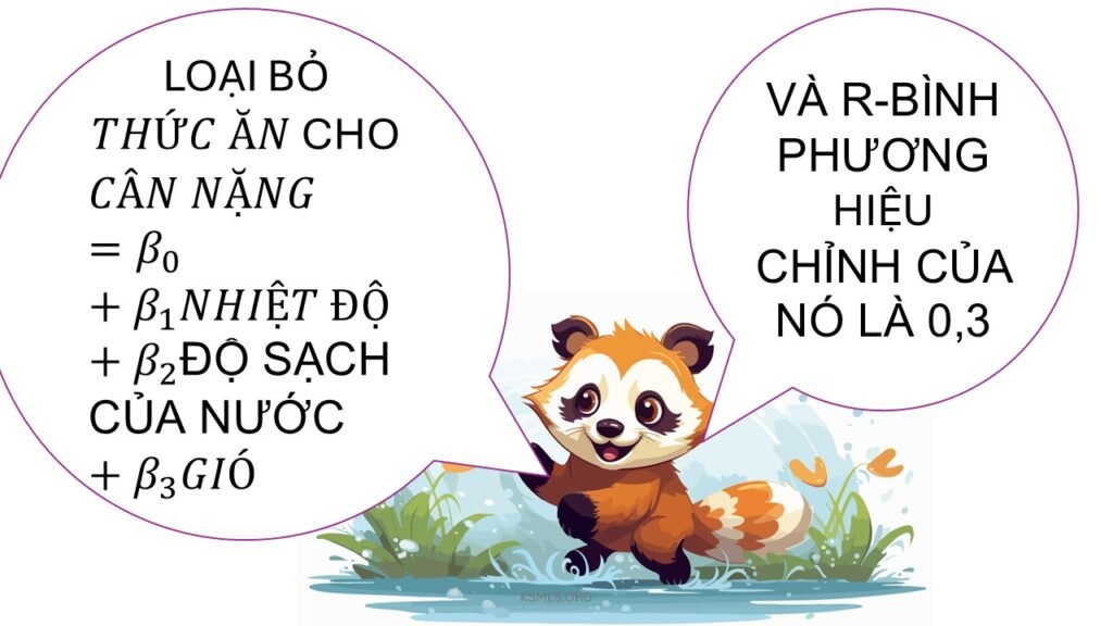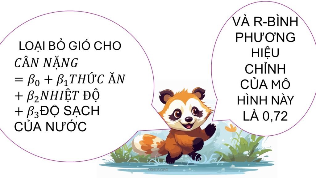 Việc loại bỏ “Thức ăn” hoặc “Độ sạch của nước” đều làm giảm R bình phương hiệu chỉnh đáng kể, vì vậy chúng ta giữ cả hai đặc trưng.