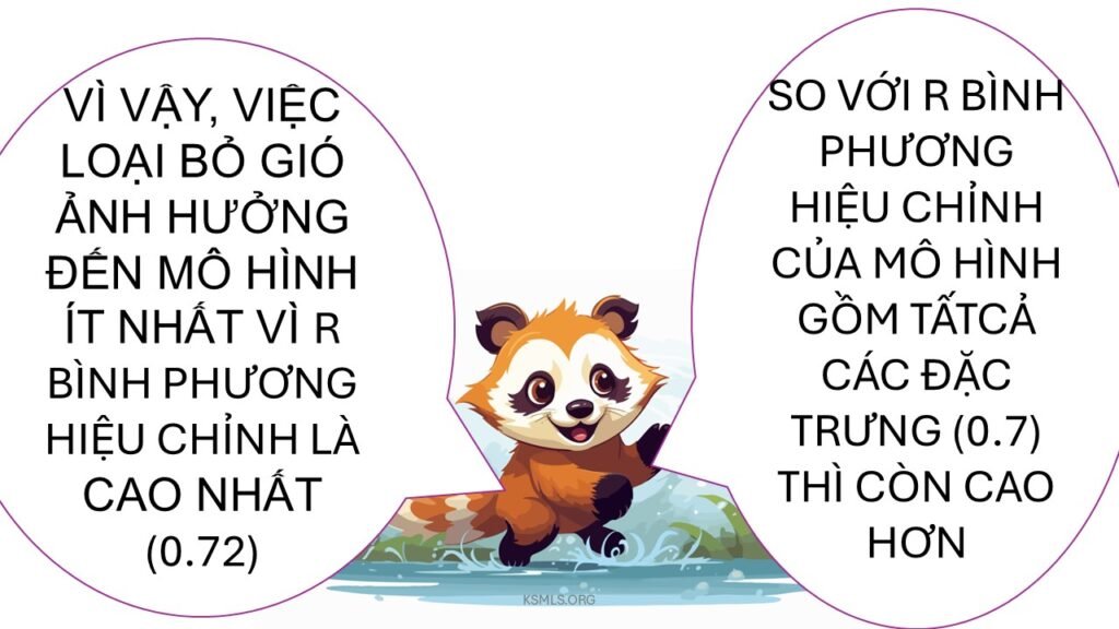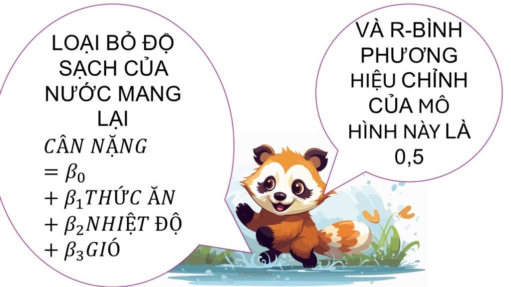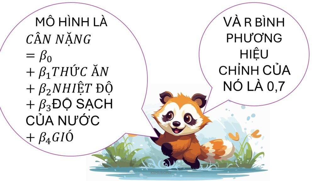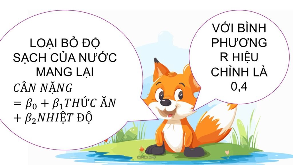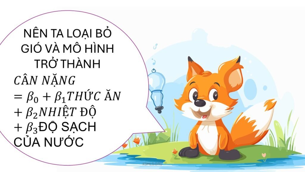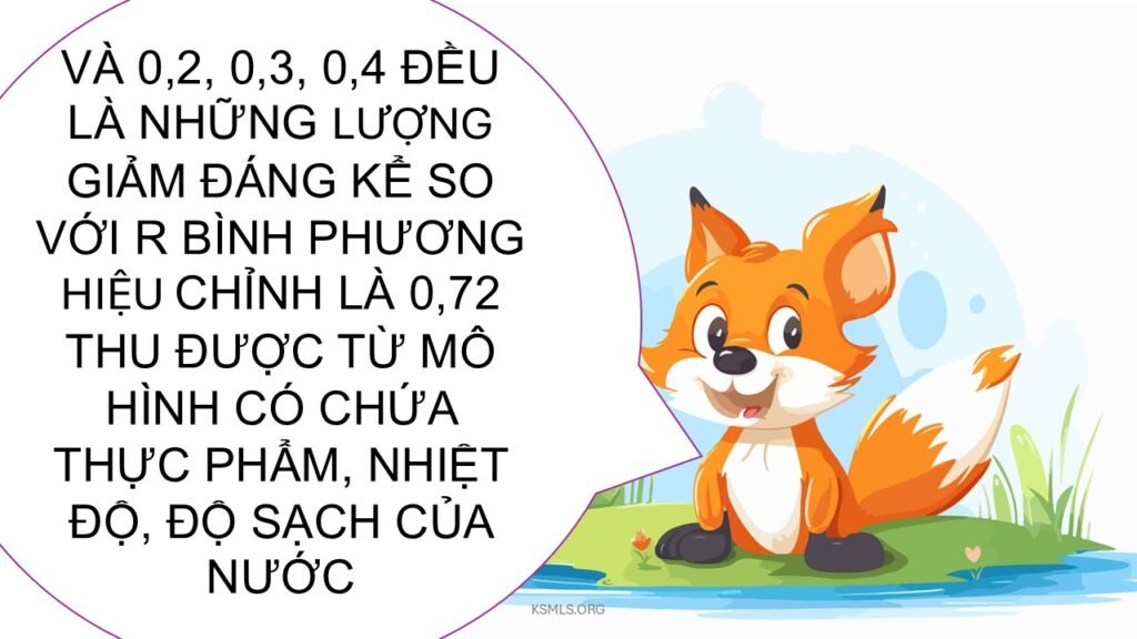 Việc loại bỏ “Thức ăn” hoặc “Độ sạch của nước” đều làm giảm R bình phương hiệu chỉnh đáng kể, vì vậy chúng ta giữ cả hai đặc trưng.
